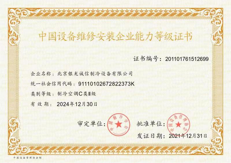 2007年:獲準成為北京市制冷行業(yè)技術(shù)學(xué)會理事單位; 2009年:獲得北京市大興區(qū)百強企業(yè)認證; 2009年:獲得國家高新技術(shù)企業(yè)認證; 2011年:獲北京市安全生產(chǎn)先進企業(yè)稱號,節(jié)能環(huán)保先進單位; 2012年:通過了國家高新技術(shù)企業(yè)復(fù)審; 2013年:公司董事長獲"2013北京先進企業(yè)家"榮譽稱號; 2014年:獲2014年度中國冷庫工程安裝設(shè)計造價行業(yè)十大品牌;